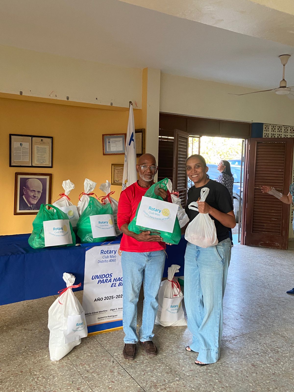 El Club Rotario Mao entrega canastas con alimentos a personas de escasos recursos económicos.
