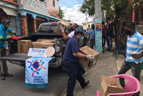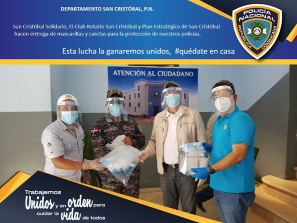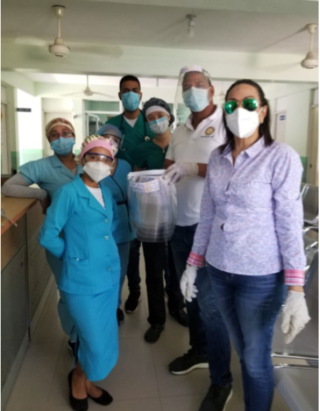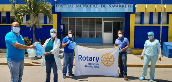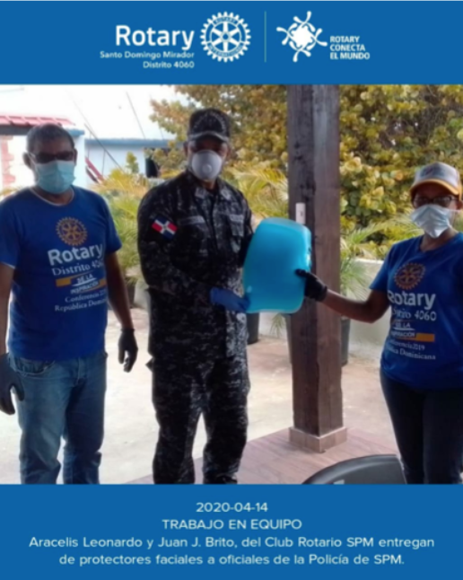 Galería fotográfica de diferentes clubes: donación de alimentos, caretas de protección facial para hospitales y la Policía Nacional, termómetros, etc.