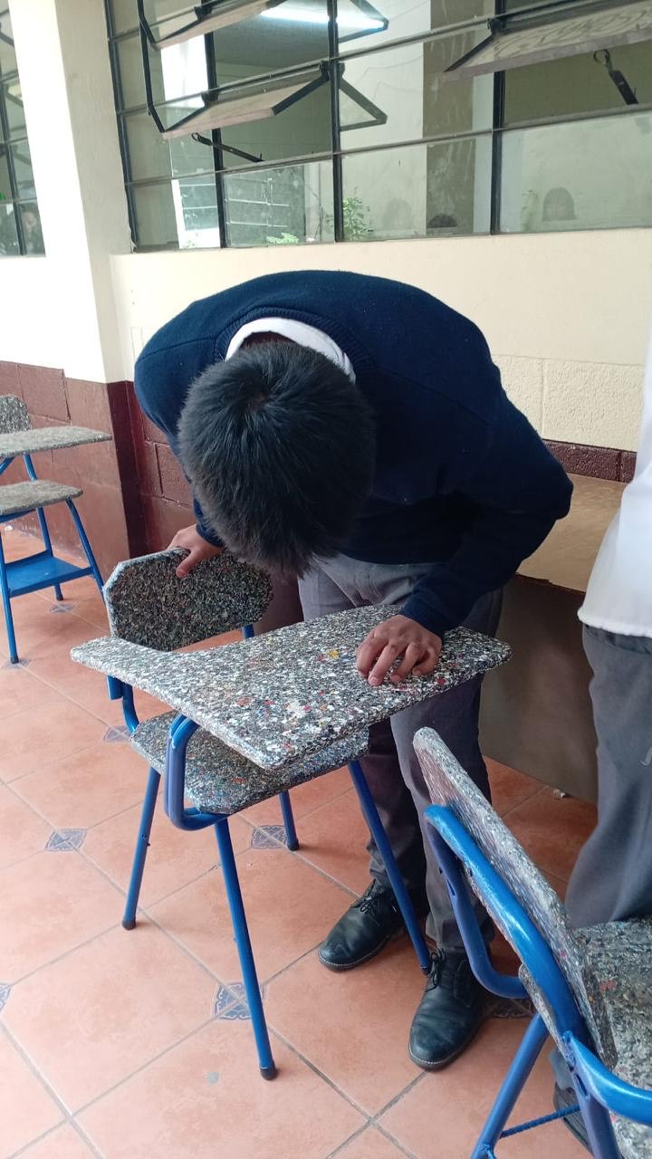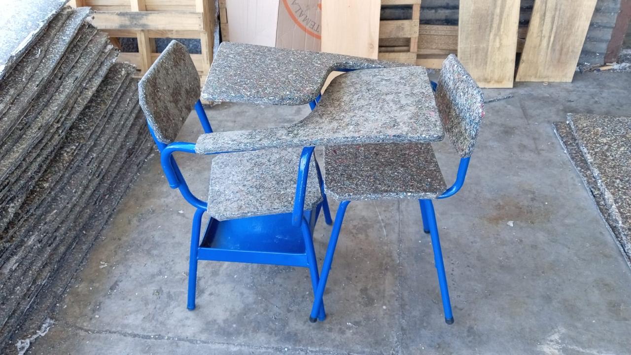 A los pupitres se les quitó la madera dañada y el óxido, se pintaron y se les colocaron tablas de plástico reciclado.