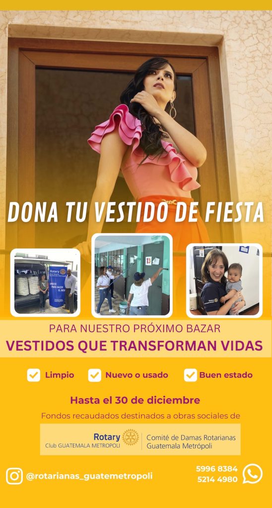 Después de varias reuniones, acordamos hacer una venta de vestidos de fiesta para recaudar fondos… y armamos el proyecto. Cuando lo presentamos al club pensaron que era una locura; aun así, nos apoyaron. Hoy, el proyecto “Vestidos que transforman vidas avanza muy bien“. Al proyecto también se han unido exrotarias y amigas del club.