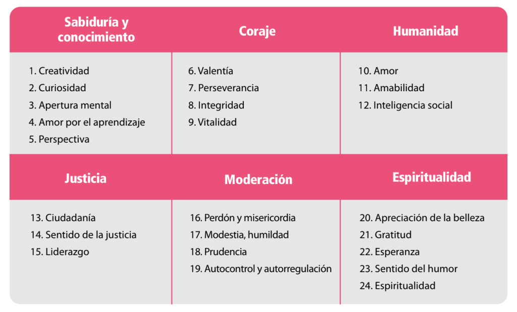 Lo interesante es que además propone un camino para aplicar el modelo: el reconocimiento y cultivo de rasgos positivos o fortalezas personales.